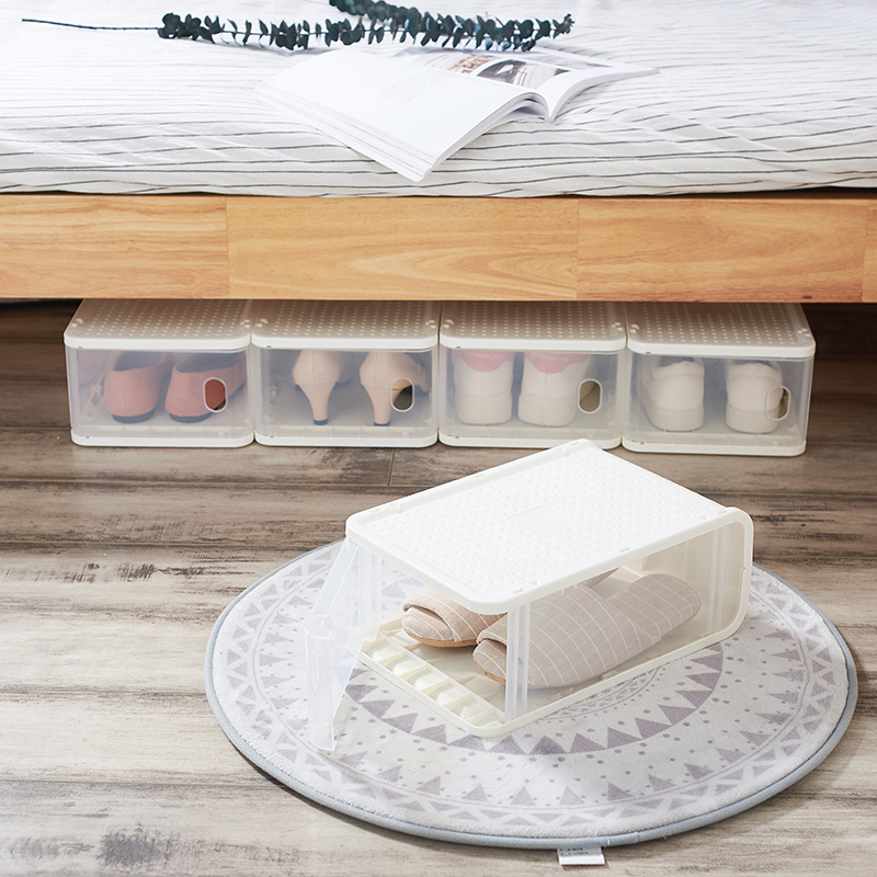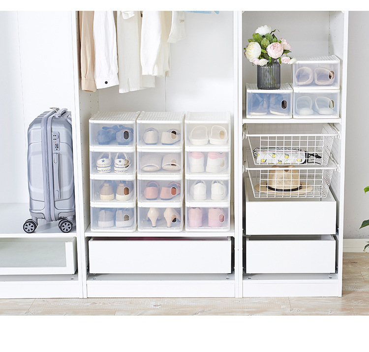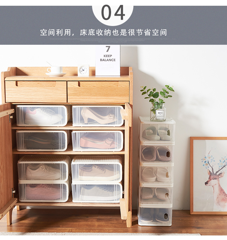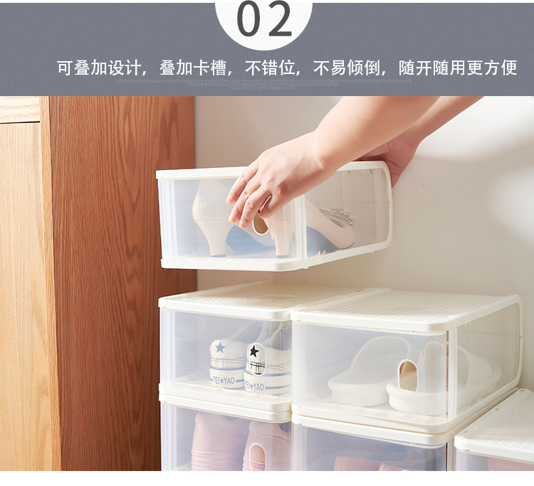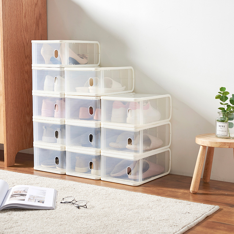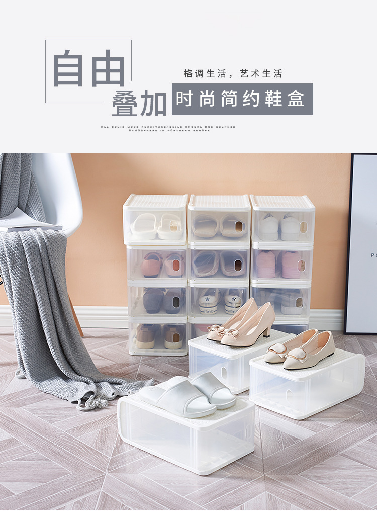 厂家现货批发创意日式塑料鞋盒可叠加防尘加厚鞋盒出口透明收纳盒